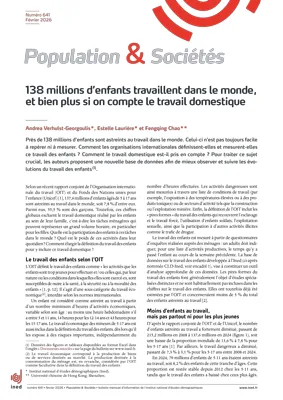Près de 138 millions d’enfants âgés de 5 à 17 ans sont astreints au travail dans le monde, selon un rapport conjoint de l’OIT et de l’Unicef de 2025. Avec 87 millions d’enfants concernés, l’Afrique subsaharienne demeure la région la plus touchée. Cependant, le travail des enfants existe aussi dans certaines régions d’Europe, comme les Balkans. Ces estimations, fondées sur une définition strictement économique du travail, excluent toutefois une large part des activités domestiques réalisées par les enfants. Or, la base de données sur le travail des enfants (CLD-Ined) met au contraire en évidence une forte participation des enfants aux tâches ménagères à l’échelle mondiale, ainsi que l’important volume horaire qu’elles représentent dans la vie des enfants, particulièrement des filles.